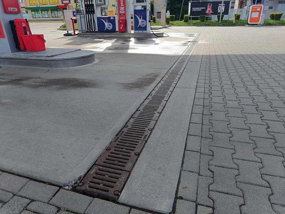 Odwodnienia liniowe klasy E600 firmy Markpol na stacji paliw w Koszalinie